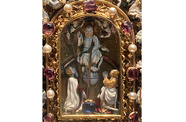 その経緯は以下のようなものです。1390年ごろ、とげを譲り受けた仏王シャルル5世の弟ベリー公爵が、「聖なるとげ」という聖遺物箱を作りました。そしてそれは16世紀に神聖ローマ帝国カール5世の手に渡り、1860年代まで後続するハプスブルグ家の財宝になりました。ところがこの箱は修理に出た間に美術商によって秘かに偽物にすり替えられたのです。富豪ロスチャイルドのフェルディナンド男爵は経緯を知らずに1872年、美術商がマーケットに流出させたその聖遺物箱を購入しました。