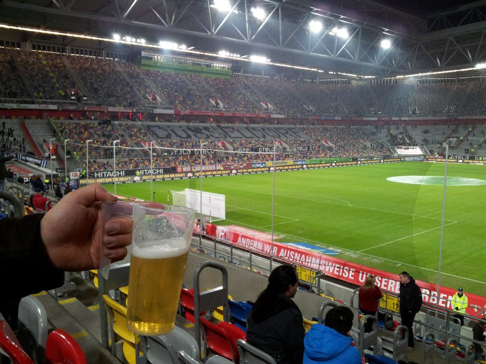 ビールはプラスティックのグラスがスタジアムでは鉄則です